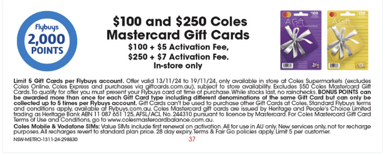(2,000 bonus Flybuy promotion Coles were running recently)