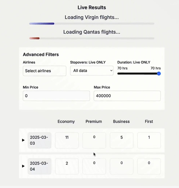SeatsFinder.Tech helps you find reward seats across Qantas and Velocity, and it lets you search up to 1 year in advance—even on the free plan.