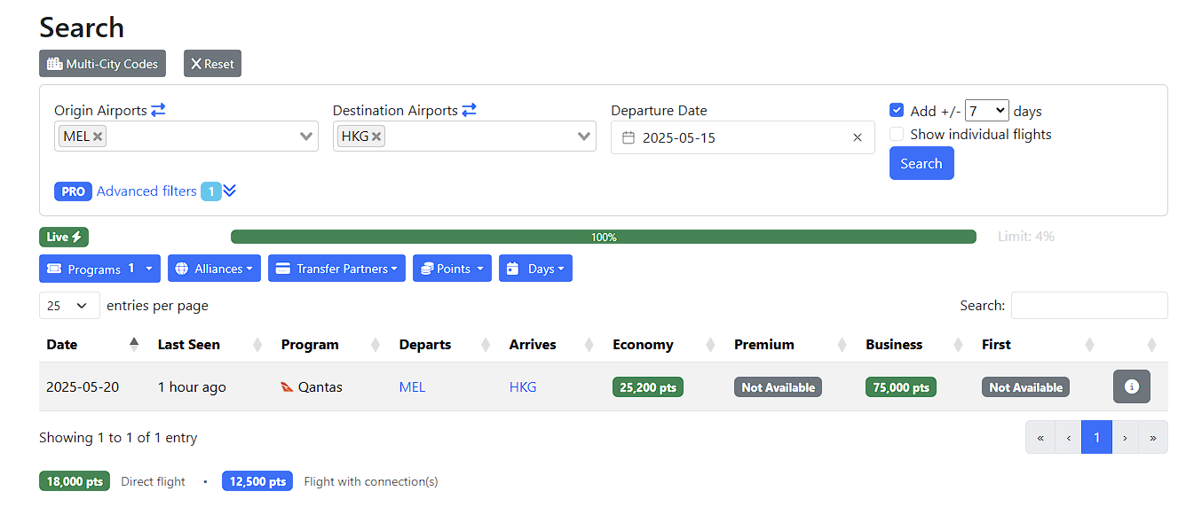 Whilst a lot of these airlines won’t be relevant for us Australians, you can still search for reward flights with Qantas, Velcity, Emirates, Etihad and Singapore Airlines! Which is the most comprehensive across all 3 tools that I’ll talk about today.